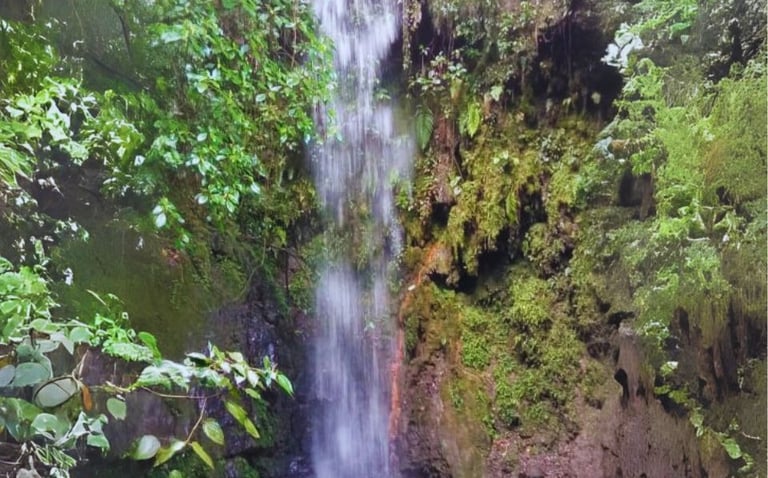 Explora la belleza de nuestra cascada y piscina con agua natural.